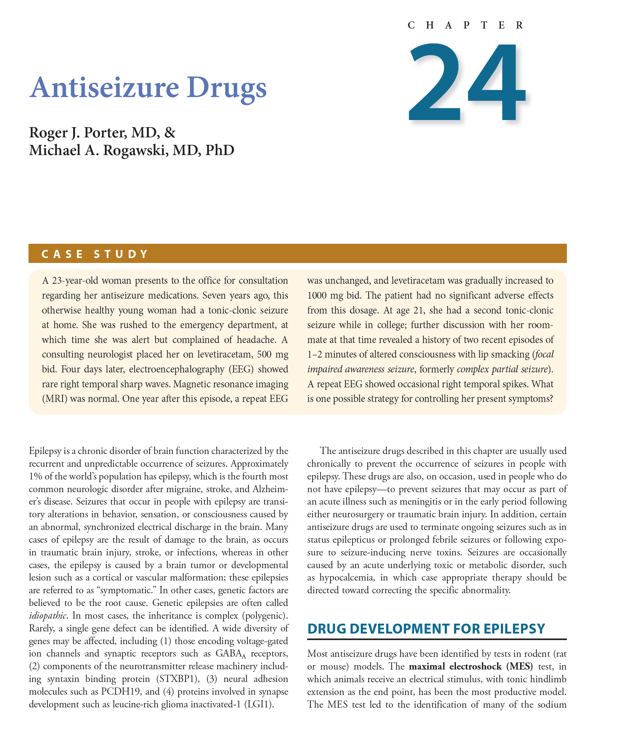 (#3-CV,p20,#139) Porter RJ & Rogawski MA: Antiseizure Drugs. In Katzung BG (Ed): Basic and Clinical Pharmacology, 14th Edition. Lange/McGraw-Hill, New York, 2018, 409-439.